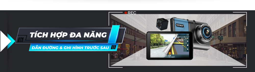 Thiết bị đa chức năng vừa dẫn đường vừa làm camera hành trình ghi hình trước & sau cùng lúc. Giúp tài xế yên tâm với chỉ với một thiết bị VIETMAP A50.