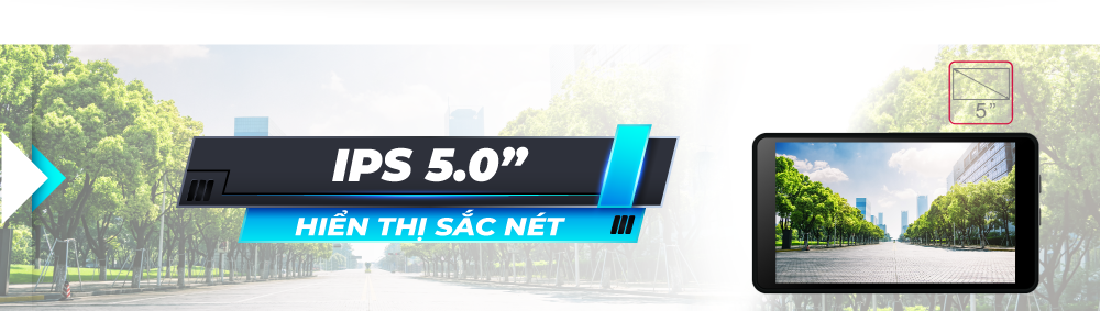 VIETMAP A50 trang bị màn hình IPS 5.0", độ nét cao. Dễ dàng thao tác, xem lại video trực tiếp trên màn hình thiết bị rõ ràng.